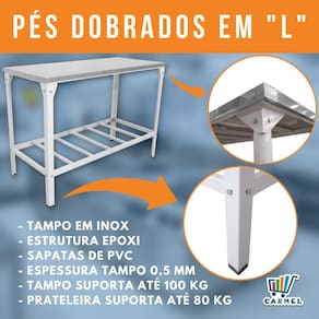Capacidade do Tampo: aproximadamente 100 Kg distribuidos
