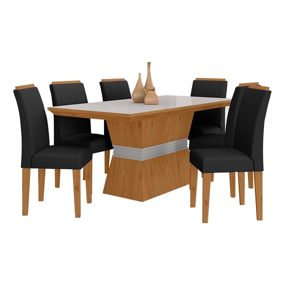 mesa jantar 6 cadeira cinza preto