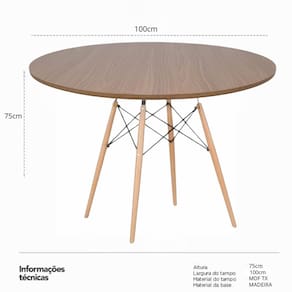 Mesa Jantar Eiffel 100cm Redonda Madeira Design Moderno Freijó - Marrom