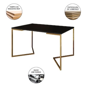 A mesa de jantar é um dos poucos móveis que efetivamente reúne a família para saborear um bom prato ao lado das pessoas que mais ama. E para garantir que o seu ambiente fique impecável, conte com a Mesa De Jantar Industrial. As laterais vazadas, sua forma reta e sua base em V conferem sofisticação e ótimo aproveitamento no cômodo.Tipo: ConjuntoModelo: Industrial Base VCor Tampo mesa: PretoCor Base mesa: DouradoCor Assento cadeira: CarameloBase cadeira: MadeiraMedidas da Mesa:Altura: 77cmComprimento: 75cmLargura: 120cmMedidas da Cadeira:Altura: 85cmLargura: 47cmComprimento: 37cmATENÇÃOIMAGENS MERAMENTE ILUSTRATIVAS REALIZADO EDIÇÃO, PODENDO HAVER UMA PEQUENA VARIAÇÃO DE COR DEPENDENDO DE CADA TELA OU MONITOR.