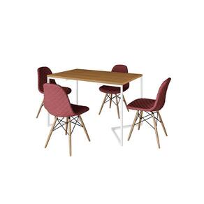 A mesa de jantar é um dos poucos móveis que efetivamente reúne a família para saborear um bom prato ao lado das pessoas que mais ama. E para garantir que o seu ambiente fique impecável, conte com a Mesa De Jantar Industrial. As laterais vazadas, sua forma reta e sua base em V conferem sofisticação e ótimo aproveitamento no cômodo.Tipo: ConjuntoModelo: Industrial Base VCor Tampo mesa: CanelaCor Base mesa: BrancoCor Assento cadeira: VermelhoBase cadeira: MadeiraMedidas da Mesa:Altura: 77cmComprimento: 75cmLargura: 120cmMedidas da Cadeira:Altura: 85cmLargura: 47cmComprimento: 37cmATENÇÃOIMAGENS MERAMENTE ILUSTRATIVAS REALIZADO EDIÇÃO, PODENDO HAVER UMA PEQUENA VARIAÇÃO DE COR DEPENDENDO DE CADA TELA OU MONITOR.
