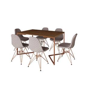 A mesa de jantar é um dos poucos móveis que efetivamente reúne a família para saborear um bom prato ao lado das pessoas que mais ama. E para garantir que o seu ambiente fique impecável, conte com a Mesa De Jantar Industrial. As laterais vazadas, sua forma reta e sua base em V conferem sofisticação e ótimo aproveitamento no cômodo.Tipo: ConjuntoModelo: Industrial Base VCor Tampo Mesa: AmêndoaCor Base Mesa: CobreCor Assento Cadeira: Nude MédioCor Base Cadeira: CobreMedidas da Mesa:Altura: 78cmComprimento: 90cmLargura: 137cmMedidas da Cadeira:Altura: 85cmLargura: 47cmComprimento: 37cmATENÇÃOIMAGENS MERAMENTE ILUSTRATIVAS REALIZADO EDIÇÃO, PODENDO HAVER UMA PEQUENA VARIAÇÃO DE COR DEPENDENDO DE CADA TELA OU MONITOR.