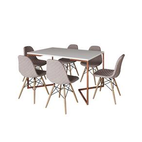 A mesa de jantar é um dos poucos móveis que efetivamente reúne a família para saborear um bom prato ao lado das pessoas que mais ama. E para garantir que o seu ambiente fique impecável, conte com a Mesa De Jantar Industrial. As laterais vazadas, sua forma reta e sua base em V conferem sofisticação e ótimo aproveitamento no cômodo.Tipo: ConjuntoModelo: Industrial Base VCor Tampo Mesa: BrancoCor Base Mesa: CobreCor Assento Cadeira: Nude MédioBase Cadeira: MadeiraMedidas da Mesa:Altura: 78cmComprimento: 90cmLargura: 137cmMedidas da Cadeira:Altura: 85cmLargura: 47cmComprimento: 37cmATENÇÃOIMAGENS MERAMENTE ILUSTRATIVAS REALIZADO EDIÇÃO, PODENDO HAVER UMA PEQUENA VARIAÇÃO DE COR DEPENDENDO DE CADA TELA OU MONITOR.