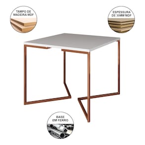 Tipo: Mesa de Jantar Formato: Quadrado Modelo: Industrial Base V Cor Base: Cobre Cor Tampo: Branco