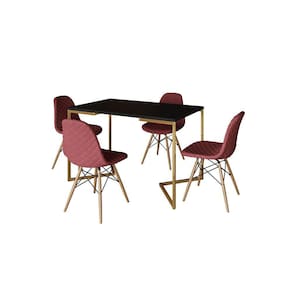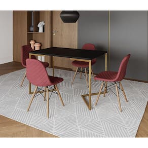 A mesa de jantar é um dos poucos móveis que efetivamente reúne a família para saborear um bom prato ao lado das pessoas que mais ama. E para garantir que o seu ambiente fique impecável, conte com a Mesa De Jantar Industrial. As laterais vazadas, sua forma reta e sua base em V conferem sofisticação e ótimo aproveitamento no cômodo.Tipo: ConjuntoModelo: Industrial Base VCor Tampo mesa: PretoCor Base mesa: DouradoCor Assento cadeira: VermelhoBase cadeira: MadeiraMedidas da Mesa:Altura: 77cmComprimento: 75cmLargura: 120cmMedidas da Cadeira:Altura: 85cmLargura: 47cmComprimento: 37cmATENÇÃOIMAGENS MERAMENTE ILUSTRATIVAS REALIZADO EDIÇÃO, PODENDO HAVER UMA PEQUENA VARIAÇÃO DE COR DEPENDENDO DE CADA TELA OU MONITOR.