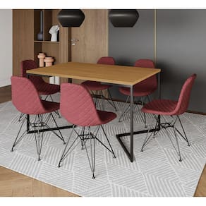 A mesa de jantar é um dos poucos móveis que efetivamente reúne a família para saborear um bom prato ao lado das pessoas que mais ama. E para garantir que o seu ambiente fique impecável, conte com a Mesa De Jantar Industrial. As laterais vazadas, sua forma reta e sua base em V conferem sofisticação e ótimo aproveitamento no cômodo.Tipo: ConjuntoModelo: Industrial Base VCor Tampo Mesa: CanelaCor Base Mesa: PretoCor Assento Cadeira: VermelhoCor base Cadeira: PretoMedidas da Mesa:Altura: 78cmComprimento: 90cmLargura: 137cmMedidas da Cadeira:Altura: 85cmLargura: 47cmComprimento: 37cmATENÇÃOIMAGENS MERAMENTE ILUSTRATIVAS REALIZADO EDIÇÃO, PODENDO HAVER UMA PEQUENA VARIAÇÃO DE COR DEPENDENDO DE CADA TELA OU MONITOR.