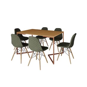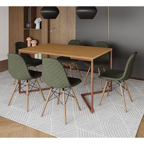 A mesa de jantar é um dos poucos móveis que efetivamente reúne a família para saborear um bom prato ao lado das pessoas que mais ama. E para garantir que o seu ambiente fique impecável, conte com a Mesa De Jantar Industrial. As laterais vazadas, sua forma reta e sua base em V conferem sofisticação e ótimo aproveitamento no cômodo.Tipo: ConjuntoModelo: Industrial Base VCor Tampo Mesa: CanelaCor Base Mesa: CobreCor Assento Cadeira: VerdeBase Cadeira: MadeiraMedidas da Mesa:Altura: 78cmComprimento: 90cmLargura: 137cmMedidas da Cadeira:Altura: 85cmLargura: 47cmComprimento: 37cmATENÇÃOIMAGENS MERAMENTE ILUSTRATIVAS REALIZADO EDIÇÃO, PODENDO HAVER UMA PEQUENA VARIAÇÃO DE COR DEPENDENDO DE CADA TELA OU MONITOR.