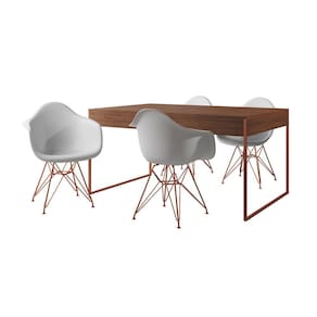 O Conjunto Mesa de jantar Filadélfia e Cadeira Eames é perfeito para reunir a família para saborear um bom prato ao lado das pessoas que mais ama. Garantindo que o seu ambiente fique impecável sem perder o estilo, qualidade e conforto.Tipo: ConjuntoModelo: FiladélfiaBase Ferro: Cobre Cor Tampo: AmêndoaCor Assento: Branco Medidas da MesaAltura: 75cmComprimento: 90cmLargura: 137cmMedidas da CadeiraAltura: 85cmLargura: 47cmComprimento: 50cmAssento até o chão: 45cmATENÇÃOIMAGENS MERAMENTE ILUSTRATIVAS REALIZADO EDIÇÃO, PODENDO HAVER UMA PEQUENA VARIAÇÃO DE COR DEPENDENDO DE CADA TELA OU MONITOR.