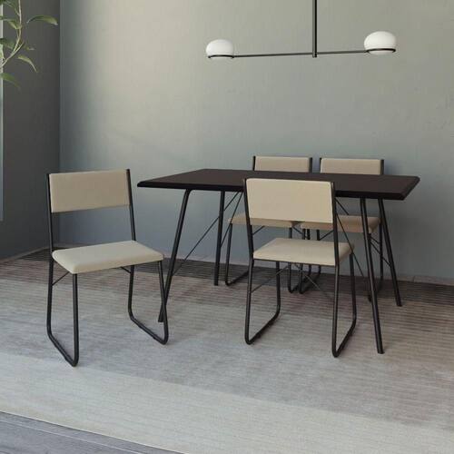Mesa Jantar Paraty 137cm Tampo Preto Com 4 Cadeiras Angra Estofadas Preta E Bege