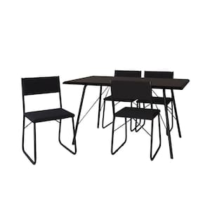 Mesa Jantar Paraty 137cm Tampo Preto Com 4 Cadeiras Angra Estofadas Pretas