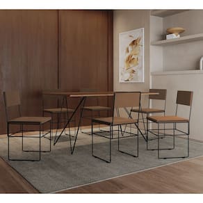 O Conjunto Vitória tem um design industrial que remete a leveza e sofisticação a sua sala de jantar ou escritório. Além disso, é uma ótima opção pra quem procura um produto moderno e bonito, com um ótimo acabamento. Ideal pra quem busca criar um ambiente moderno.
