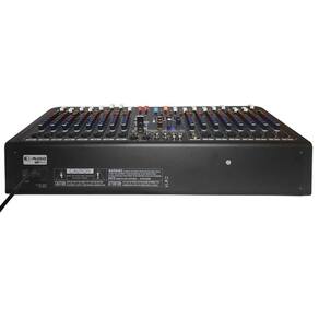 Mesa k-audio mp1610 16 canais Descrição do produto: mixer analógicos de alto desempenho com efeitos integrados equalizador paramétrico de 3 bandas low - grave 100hz / mid - médios / 1khz / high - agudo 10khz ajuste do pré amplicador por canal gain 2 saídas trs aux send 1 saída dedicada para máquina de efeito por canal máquina de efeitos composto por 16 preset e ajustes controle de pan por canal left / right mute e controle de volume por fader de 60mm 48v power botão de acionamento do 48v divididos por grupo entradas tipo rca com controle de volume por fader 60mm 2 buses de grupo saídas tipo rca para gravação equalizador gráco de 7 bandas para ajuste da saída master ou subgrupos saída xlr main out saída trs main out vu saída meterbridge standard saída trs dedicada ao uso de fones de ouvido porta usb 2.0 para conexão de pendrive com áudios em mp3 conexão bluetooth para reprodução através de equipamento portátil Homologação Anatel: 007892012769 Marca: Não Informado