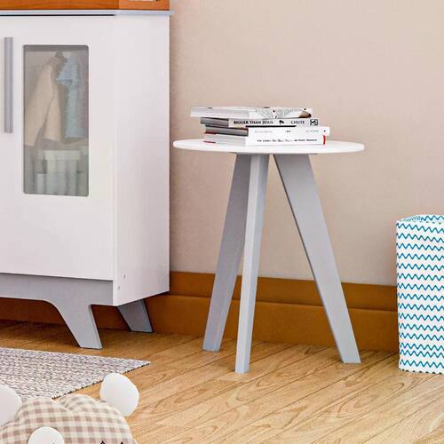 Mesa Lateral 100% MDF Retrô Móveis Peroba Branco Brilho/Cinza