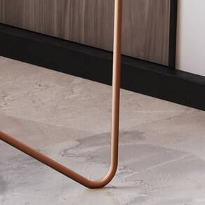 Os pés metálicos, com acabamento refinado e linhas delicadas, garantem firmeza e trazem um toque industrial que equilibra o visual da peça, valorizando tanto salas de estar quanto dormitórios ou ambientes corporativos.