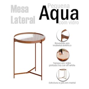 Mesa Lateral Ambiente Aqua Pequena com Vidro Off White Cobre - Imcal