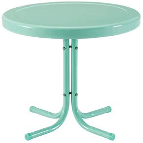 - Retrocesso retrô: esta mesa lateral de pátio externo dá vida ao charme vintage com seu acabamento vibrante com brilho aquático e base de pedestal clássica.