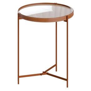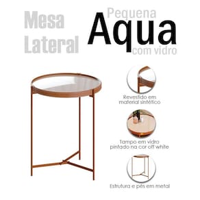 Mesa Lateral Aqua Pequena com Vidro Off White Cobre - Imcal