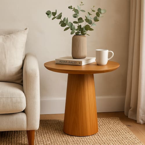 Mesa Lateral Aracaju Redonda Com Base Cônica– Sofisticação e Estilo em Cada Detalhe