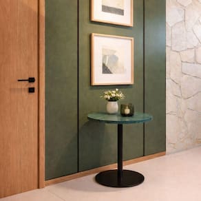 Valorize a decoração com a mesa lateral Linn Design Mesa Lateral Atria, ideal para apoio em salas de estar, dormitórios e ambientes corporativos. Com design contemporâneo e funcional, ajuda a organizar objetos de uso diário sem comprometer a circulação. O tampo em pedra natural Mármore Verde Guatemala e a base em laca marrom sobre estrutura de alumínio combinam sofisticação visual com resistência no uso cotidiano. Seu formato redondo de 41 cm se integra facilmente a composições ao lado de sofás, poltronas ou camas, dialogando com estilos do moderno ao minimalista. A qualidade dos materiais e o projeto da Linha Atria garantem uma peça durável e com acabamento de alto padrão.
