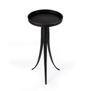 A bela base de pedestal de três pernas desta mesa lateral confere a ela uma silhueta arejada e cheia de curvas, elegante e discreta. A mesa de alumínio tem acabamento em preto liso com um fino acabamento dourado nas bordas.