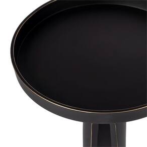 A parte superior é levantada, garantindo que as 5 horas permaneçam exatamente onde deveriam. Características: Acabamento liso em preto com acabamento fino em ouro nas bordas externas Tampo da mesa redonda com borda externa elevada Construção em alumínio sólido com base de pedestal de três pernas Design leve de 5 libras. Limpe com um pano seco Especificações: Montagem necessária: Não Dimensões do produto: 12" L x 12" P x 24,25" H Peso do produto: 6 libras Capacidade de peso: 25 libras Material: alumínio Cor/acabamento: metalurgia - Acabamento em preto liso com acabamento fino acentuado em ouro nas bordas externas - Tampo de mesa redondo com exterior elevado borda