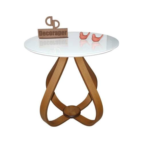 Mesa Lateral Cebola Com Vidro 60cm Branco 70cm
