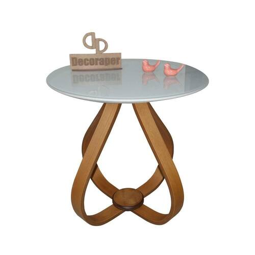 Mesa Lateral Laqueada com Vidro e pés Cebola