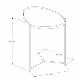 A mesa lateral orgânica Alamanda contém a borda em couro sintético e espelho 4mm, além dos pés em ferro.