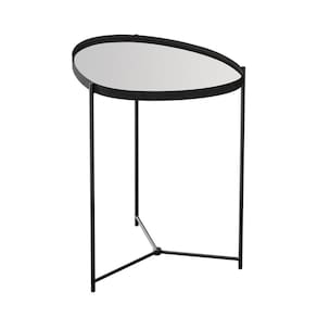 A mesa lateral orgânica Alamanda contém a borda em couro sintético e espelho 4mm, além dos pés em ferro.