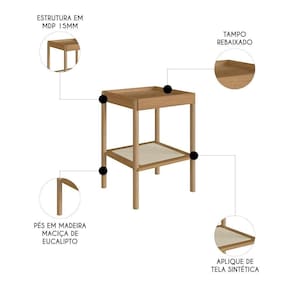 Fabricada em MDP de 15 mm com acabamento BP, a Mesa Lateral oferece durabilidade. Os pés em madeira maciça de eucalipto garantem estabilidade, enquanto as sapatas emborrachadas protegem o piso de arranhões. O aplique de tela sintética na prateleira inferior não só adiciona um elemento decorativo, mas também oferece elegância ao ambiente. Com seu design retrô, a Mesa Lateral Sofá se adequa facilmente a diferentes ambientes e estilos de decoração. Este móvel não é apenas um objeto de apoio, mas também um charme na decoração da Sala de Estar.