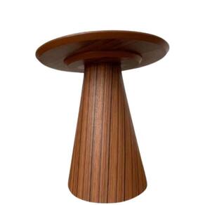 Mesa Lateral Cone Redonda, Tampo 51 cm em MDF Melamina Pau Ferro, Base em MDF Flexivel Laminada em Madeira Natural Pau Ferro.