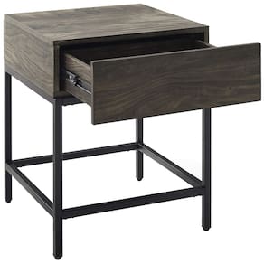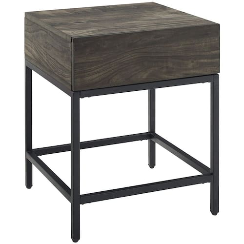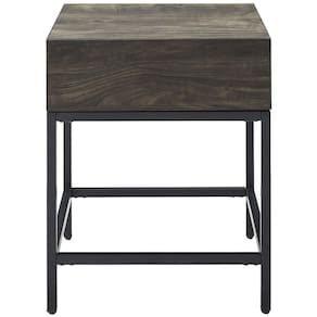 - DESIGN INDUSTRIAL: Feita com acabamento em cinza marrom e estrutura de aço preto fosco, esta mesa lateral incorpora um design industrial elegante.