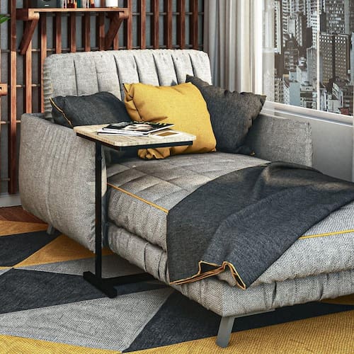 Pode ser usada no sofá, na cama ou em qualquer lugar que você busque um apoio ergonômico. Um móvel para usar quando, como e onde você quiser! Feita de aço e MDP BP de alta qualidade. Pintura da estrutura em poliéster na cor preto fosco.