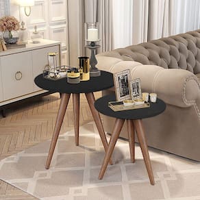 O Conjunto de Mesa Lateral e Apoio, certamente causará um impacto visual muito satisfatório em sua casa, além também de exibir uma personalidade única. Esse é um conjunto de estilo retrô com um toque contemporâneo, produzido em MDF e madeira maciça, garantindo além de estilo, muita qualidade para apoiar uma grande variedade de objetos decorativos de seu agrado. Informações Técnicas- Tipo: Conjunto- Modelo: Retrô- Cor: Preto- Produzida em MDF de 15mm- Pé de madeira Maciça- Borda invertidaDimensões do Produto MontadoMESA LATERAL ? Mesa mais altaAltura: 50cmDiâmetro: 45cmMESA DE APOIO ? Mesa mais baixaAltura: 40cmDiâmetro: 35cmObservações- Os objetos que ambientam as fotos não acompanham o produto- O produto será entregue desmontado- É de inteira responsabilidade do cliente a montagem do produto e/ou instalaçãoATENÇÃOIMAGENS MERAMENTE ILUSTRATIVAS, PODENDO HAVER UMA PEQUENA VARIAÇÃO DE COR DEPENDENDO DE CADA TELA OU MONITOR.Mesa Lateral Decorativa Redonda PÃs Palito - Preta Marca: Gabilite Mobília