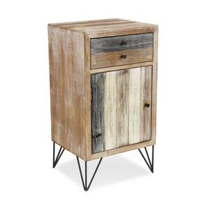 Mesa lateral de madeira Cheung em estilo painel em tons brilhantes, marrom