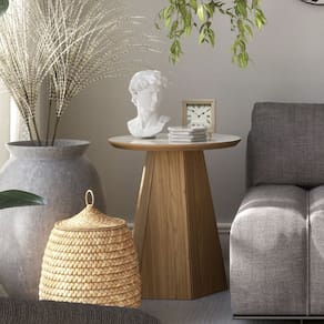 Mesa Lateral em MDF TB606 50cm com Base Hexagonal Off White Freijó Dalla Costa