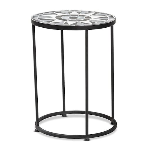 Melhore as capacidades do seu quintal com o design maravilhoso da mesa lateral externa Kaden. Feita na China, esta mesa é construída em metal sólido. A mesa redonda é decorada com detalhes em vidro colorido que se combinam para formar um padrão de mosaico visualmente deslumbrante. O Kaden chegará totalmente montado e apresentará um design aberto e organizado que permite que a luz flua naturalmente por toda a área. Uma peça de destaque espetacular para unir qualquer pátio ou deck, a mesa lateral externa Kaden certamente deixará uma boa impressão.