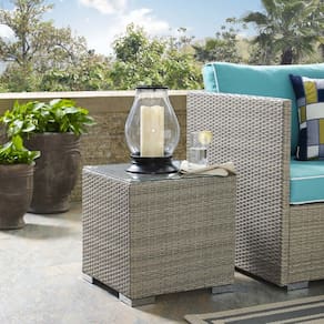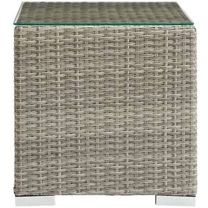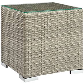 Modway Mesa de canto lateral de vime em vidro de vime para ambientes externos, pátio, em cinza claro