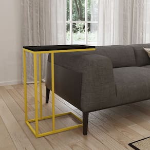 Mesa Lateral Industrial Elena Tampo Preto Base Ferro Amarelo