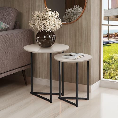 Jogo de Mesa Lateral e Apoio Jade Base Aço Cobre estilo industrial tampo MDF DTH Imports