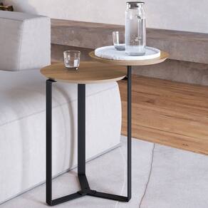 Transforme a sua decoração com a Mesa Lateral 2 em 1 Dari, da Lyam Decor, uma verdadeira obra-prima que une estilo e funcionalidade. Composta por dois tampos redondos harmoniosamente conectados por uma base metálica, essa peça é um convite a um design moderno e versátil.