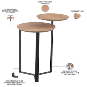 Peso máximo suportado 10 kg no tampo maior e 3 kg no tampo menor.