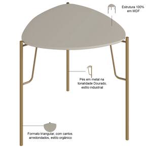 A Mesa Lateral Alta Alef, da Lyam Decor, reinventa o conceito de móveis para sala de estar e living com seu formato triangular e cantos arredondados, unindo o estilo orgânico ao industrial.