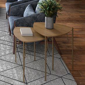 A Mesa Lateral Baixa Alef, da Lyam Decor, reinventa o conceito de móveis para sala de estar e living com seu formato triangular e cantos arredondados, unindo o estilo orgânico ao industrial.