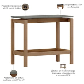 Estrutura em madeira maciça de pinus de reflorestamento e tampo em MDF.