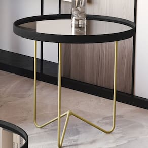 Mesa Lateral Preto Pe Dourado - Moveis JB