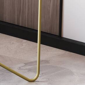 Os pés metálicos, com acabamento refinado e linhas delicadas, garantem firmeza e trazem um toque industrial que equilibra o visual da peça, valorizando tanto salas de estar quanto dormitórios ou ambientes corporativos.