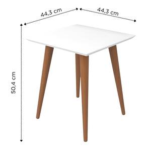 Com estrutura firme, ela combina tampo em MDF e pés inclinados em madeira maciça, trazendo mais estabilidade e durabilidade. O contraste do tampo branco Gloss com a base em madeira traz charme e sofisticação, e a mesa funciona muito bem ao lado do sofá, poltrona ou cama.