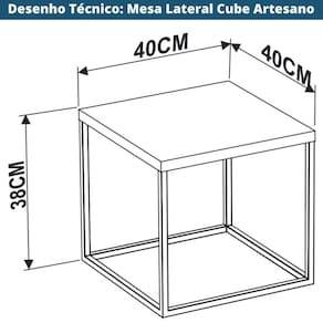 Mesa Lateral Quadrada Cube Artesano 38 Cm (altura) Em Mdp Bp Estrutura Preta Em Aço Preto Fosco A Mesa Lateral Complemento da Artesano une beleza e funcionalidade, os ambientes da sua casa serão muito mais completos com elas. O acabamento manual em múltiplas etapas revela toda a beleza da madeira. Aproveite o melhor do design contemporâneo, aliado à atemporalidade de peças que combinam madeira maciça com estruturas em aço, deixando seu ambiente muito mais estiloso e harmônico. Fundada em 1 de julho de 1982, sediada em Bento Gonçalves, na Serra Gaúcha, a Artesano é uma empresa que oferece aos clientes móveis de qualidade, design moderno e comprometimento com as entregas. Mais que um negócio, a Artesano é uma família que contribui para o bem estar social, respeitando o indivíduo, a sociedade e o meio ambiente. É uma empresa com raízes em seu conhecimento adquirido no passado, mas com olhos no futuro, no crescimento constante, no aperfeiçoamento, lutando sempre pela satisfação da pessoa mais importante de todo o processo: VOCÊ! Além da grande abrangência Nacional, a Artesano exporta suas linhas de produtos para os cinco Continentes, móveis com design exclusivos e materiais de primeira linha se unem para transformar a Artesano em uma marca presente nos mais lindos ambientes. Artesano, a arte de criar móveis! Cor: Preto | Materiais: MDP, Aço | Material da estrutura: Aço | Tonalidade: Preto | Linha: Artesano | Estilo de Decoração: Industrial | Marca: Artesano | Peso Suportado (kg): 5 | Área de Uso: Interna | Garantia (tempo): 6 meses | Garantia (descritivo): Garantia contra defeitos de fabricação de 06 meses. Consulte as nossas políticas. | Peso (kg): 4.2 | Largura (cm): 40 | Profundidade (cm): 40 | Altura (cm): 38 | Entregue Montado?: Não | Possui Manual de Montagem?: Acompanha o Produto | Origem do Produto?: Nacional | Conservação e Manutenção: Limpeza com pano úmido em solução de água e detergente neutro. Secar em seguida. | Acabamento: Fosco | Formato: Quadrado | Atributos: Decorativo, Versátil, Sofisticado | Produto: Mesa Lateral Quadrada Cube Artesano 38 cm (altura) em MDP BP estrutura Preta em Aço Preto Fosco | Tipo de Base: Central