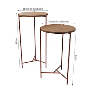Mesa Lateral Redonda áquila Cobre E Tampo Imbuia - Cor: Marrom Mesa Lateral Redonda Áquila Cobre E Tampo ImbuiaJogo de mesa lateral, design sofisticado e moderno, o estilo permite que você tenha total liberdade para deixar seu ambiente ainda mais elegante, tem um visual único e traz junto com elas variações de cores dando uma combinação perfeita para seu ambiente.Tipo: Mesa LateralModelo: ÁquilaCor: Cobre Tampo: Imbuia Medidas:Mesa 01Altura: 55cmDiâmetro: 35cmMesa 02Altura: 55cmDiâmetro: 35cmATENÇÃOIMAGENS MERAMENTE ILUSTRATIVAS REALIZADO EDIÇÃO, PODENDO HAVER UMA PEQUENA VARIAÇÃO DE COR DEPENDENDO DE CADA TELA OU MONITOR. Mesa Lateral Redonda Ãquila Cobre e Tampo Imbuia